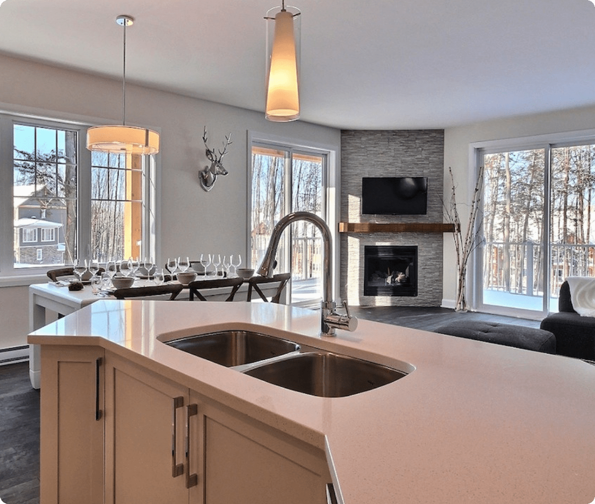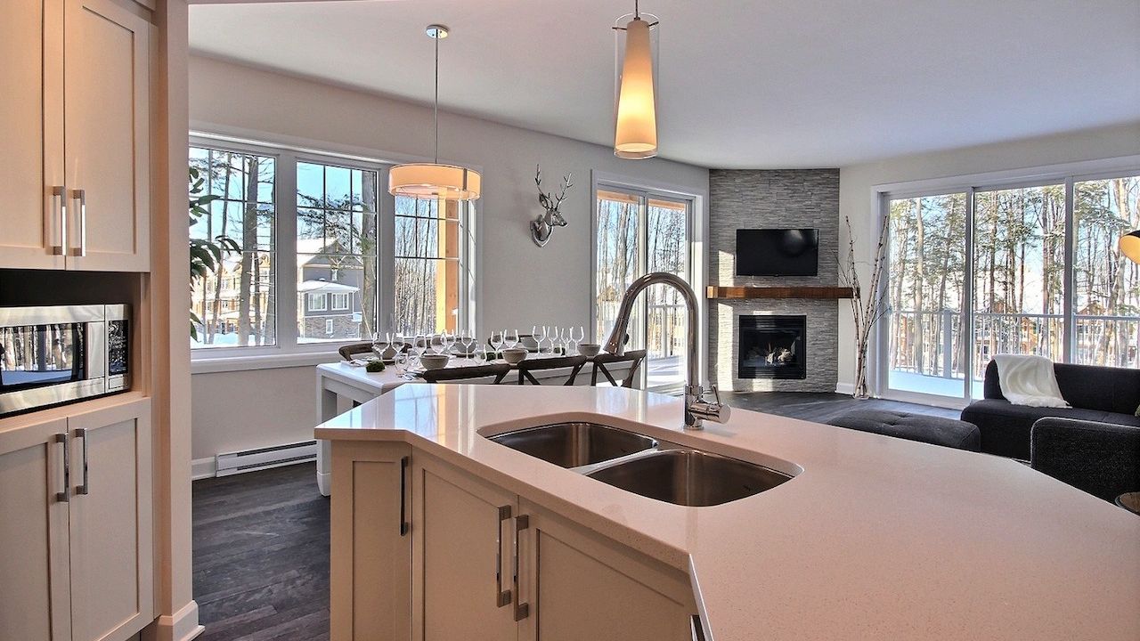 Véritable ski-in ski-out, situé sur le Versant Ouest de la montagne, Le Cercle des Cantons offre des résidences luxueuses et chaleureuses de type condo et maison de ville avec garage. Projet résidentiel de prestige, il offre tout le confort et toutes les commodités afin de charmer les plus exigeants : pièces inondées de lumière, foyer, garage intérieur, ascenseur, terrasses baignées de soleil, piscine chauffée, accès direct aux pentes de ski et au sentier multifonctionnel qui ceinture la montagne. S’offrir une résidence au Cercle des Cantons, c’est s’offrir la vie au coeur de 50 acres de boisé, à un jet de pierre du pittoresque village de Bromont, de ses restos et de ses galeries d’art, de quatre terrains golfs, du Parc équestre, des Lacs Bromont et Gale, sans oublier le réputé Spa Balnéa qui cultive l’art de la détente.